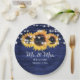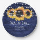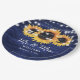 Navy Blue Sunflower Rustic Wood Wedding Paper Plate
