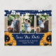 Navy Blue Sunflower Wedding Photo Save The Date Announcement Postcard