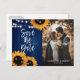 Navy Blue Sunflower Wedding Photo Save The Date Announcement Postcard