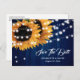 Navy Blue Sunflower Wedding Save The Date Postcard