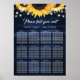 Complement your navy blue rustic wedding party inspired by sunflowers with this floral seating chart for 12 tables. Matching items available.