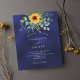 A navy blue background decorated with sunflowers, eucalyptus greenery. The blue colour is uneven. Personalise and add your names and party details.