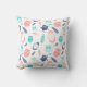 Bright turquoise teal, dark navy blue, peach coral and white owl illustration pattern pillow. Fully customisable, add your own text or photo for a truly unique home decor item, perfect for a nursery or children's room.