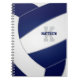 This volleyball themed spiral notebook features the image of an abstractly oversized navy blue and white volleyball - personalise with the athlete's name and monogram - by katz_d_zynes