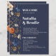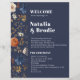 A lovely handpainted watercolor border with a modern font and dark moody theme. A dark and moody French Country design. Easily edit the template to suit your wedding event. Navy Blue Terracotta Bohemian Wedding Program.