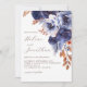 Navy Blue Terracotta Rust Floral Elegant Wedding Invitation