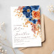 Navy Blue Terracotta Rust Rustic Elegant Wedding Invitation