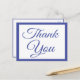 This charming navy postcard features an elegant blue thank you greeting highlighted against a creamy white background with a blue border.