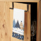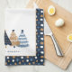 Navy Blue Trees Modern Dots Christmas Name Tea Towel