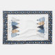 Christmas kitchen towel with modern simple blue Christmas trees and edges with dotted pattern in the same colours. Easily personalise the text - Kate Eden Art