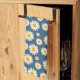 Sophisticated navy blue flower pattern kitchen towel featuring stylish tropical blooms, whimsical botanical motifs, and retro spring summer charm for an elegant nature-inspired accent.