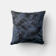 Bring a bit of elegant tropical hospitality into your home with this chic, modern throw pillow sporting a handwritten monogram initial over a graphic palm leaf pattern of steel navy blue gradations, overlaying black. Makes a fun and stylish statement every time you relax on it. A great addition to your living room or bedroom, as well as a wonderful gift for a friend!