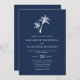 Navy Blue Tropical Palm Tree Beach Wedding Invitation