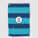 Navy Blue Turquoise Striped Classic Monogram Golf Towel
