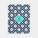 Navy Blue, Turquoise, White Ikat Diamond Fleece Blanket