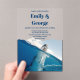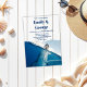 This elegant navy wedding invitation is perfect for a coastal wedding. The design features a beautiful under-the-sea view of a giant whale with sleek navy blue calligraphy on a clear acrylic background.