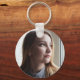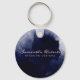 Navy Blue Watercolor Abstract Blush Pink Photo Key Ring