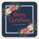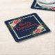 Navy Blue Watercolor Flowers Christmas Square Paper Coaster