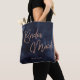 Navy Blue Watercolor Rose Gold Bridesmaid Monogram Tote Bag