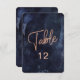 Navy Blue Watercolor Rose Gold Table Number Chart
