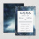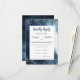 Starry night themed wedding RSVP card. Navy blue and watercolor textured design with silver glitter. This card has the option to list meal choices for guests to choose from.