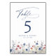 Navy Blue Watercolor Wildflower Rustic Wedding Table Number