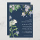 Navy blue watercolor wildflowers classic wedding invitation
