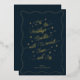 A modern navy blue holiday card with a wavy gold border and shimmering lettering. This non photo holiday card is timeless and elegant, perfect for sending Christmas greetings to loved ones. The back includes pre-written wishes with “simple joys” or space to write your own holiday message. A classy choice for sharing warmth, cheer, and joy this festive season.