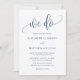 Invite family and friends to your wedding with this customisable wedding invitation. It features navy blue calligraphy "We Do" with classic typography. Personalise this blue and white wedding invitation by adding your own details. This modern wedding invitation is perfect for any wedding theme or season.