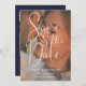 This navy blue elegant script wedding save the date invitation can be personalised with your 2 special photos and wedding day information. Designed by Thisisnotme©
