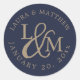 Navy Blue Wedding Monogram Classic Round Sticker