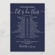 This stylish navy blue wedding schedule timeline can be personalised with your wedding details in chic lettering. Designed by Thisisnotme©