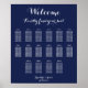 Simple navy blue wedding seating chart with changeable white text - you can add Bride's and Groom's name, wedding date and guest's names (16 tables).