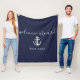 Navy Blue Welcome Aboard Nautical Anchor Boat Name Fleece Blanket
