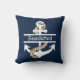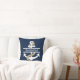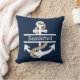 Navy Blue White Anchor Nautical Throw Pillow personalised with your ship's name.