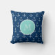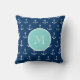 Navy Blue White Anchors Pattern, Mint Green Monogr Cushion