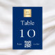 Navy blue background, white text. Personalise and add your business logo, and add your website link to the QR code.