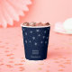 This custom navy blue paper cup features a simple logo and text template with snowflake pattern. Add your logo and customise the text with your information. You can use this winter holiday personalised cup at your business place, shops, company christmas party or, etc.