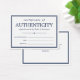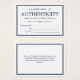 Elegant and minimalist certificate of authenticity in navy blue and white to which you can add your name or business name.