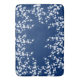 Navy Blue White Cherry Blossom Bath Mat