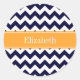 Navy Blue White Chevron Cantaloupe Name Monogram Classic Round Sticker