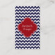 Navy Blue and White Chevron ZigZag Pattern, Cranberry Red Ribbon Name Monogram Label
