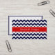 Navy Blue White Chevron Zig Zag Red Name Monogram Business Card