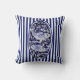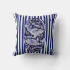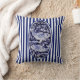 Navy Blue & White Chinoiserie Koi Fish Pond Stripe Cushion