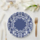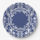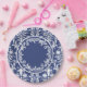 Navy Blue White Damask Floral Swirls Sophisticated Paper Plate