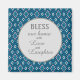 Navy blue, teal and white diamond pattern magnet with text "Bless our home with love and laughter."