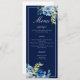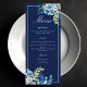 Navy Blue White Floral Elegant Wedding Dinner Menu