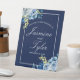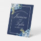 Navy Blue White Floral Elegant Welcome Wedding Pedestal Sign