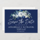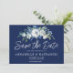 Navy Blue White Floral Elegant Winter Evening Save The Date