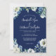 Navy Blue White Floral Handwritten Winter Wedding Invitation